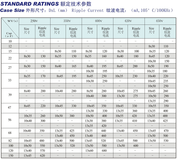 Life Time:105 ℃ ,2000 hours or 85 ℃,8000 hours